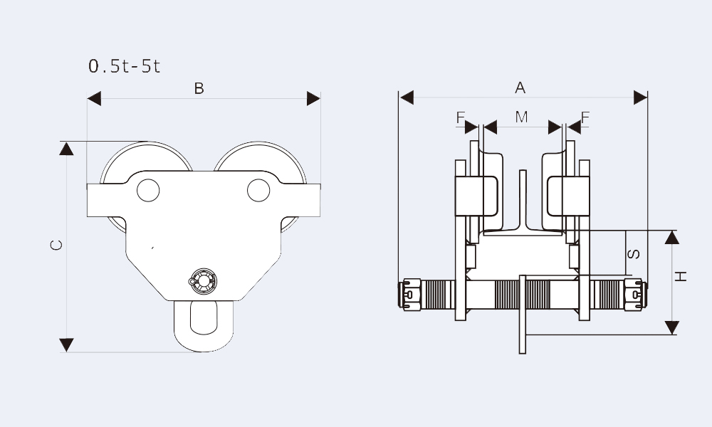 山東五牛GCT-A 手推單軌小車與手拉葫蘆或其它起重工具配套使用,安裝于工字鋼軌道的下翼緣上,組成起重運輸小車,用戶均可特殊訂購,我廠還可根據用戶來圖、來樣或特殊要求設計制造,小車車輪采用鼓形路面,用戶如需要錐形路面。可提出特殊訂貨,除表列標準運行高度外,在12米以內各運行高度均可訂貨,由于我們的產品不斷改進發(fā).展,因此產品的詳細結構可能與樣本有出入。
